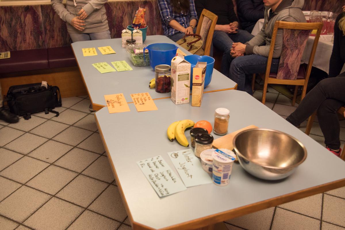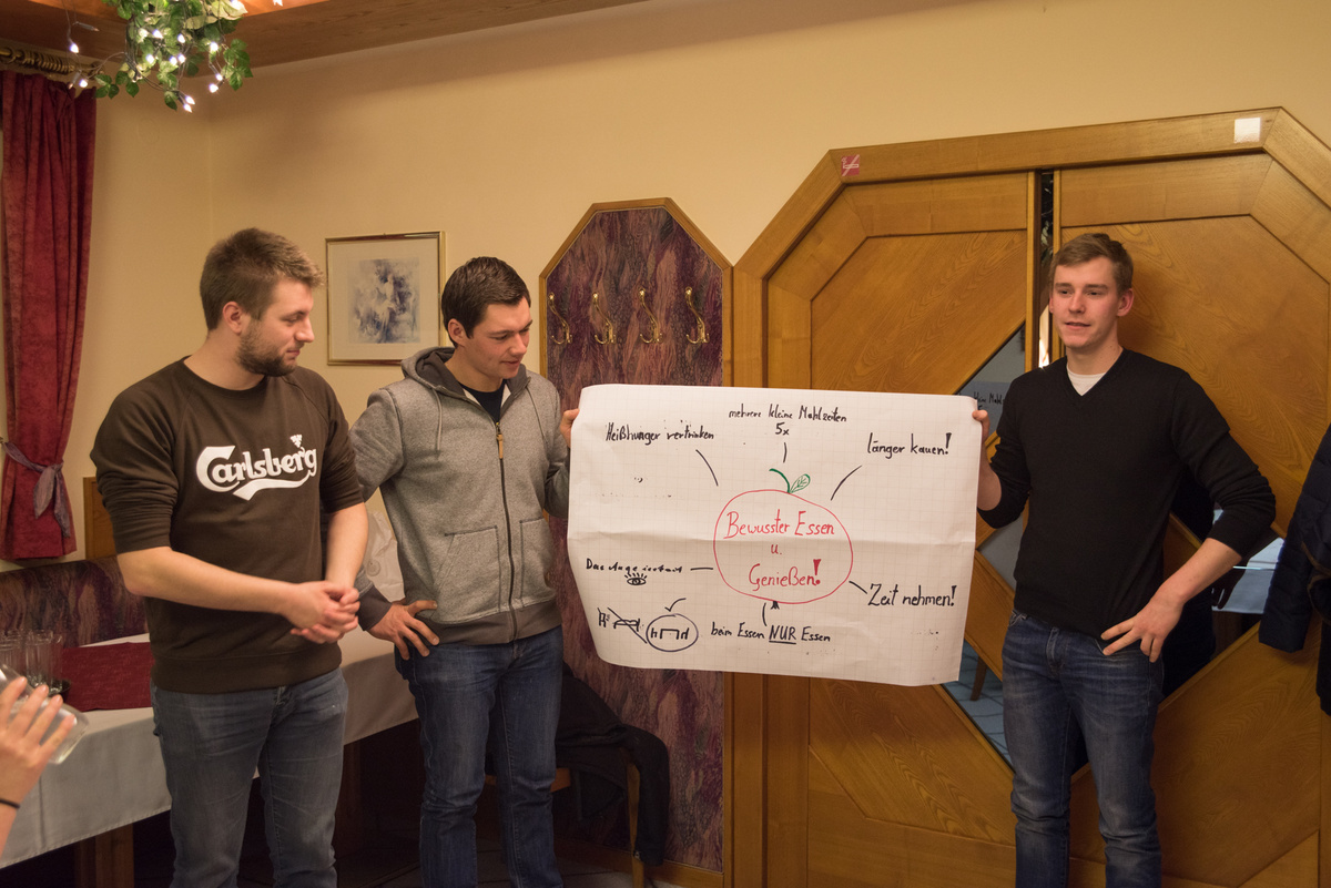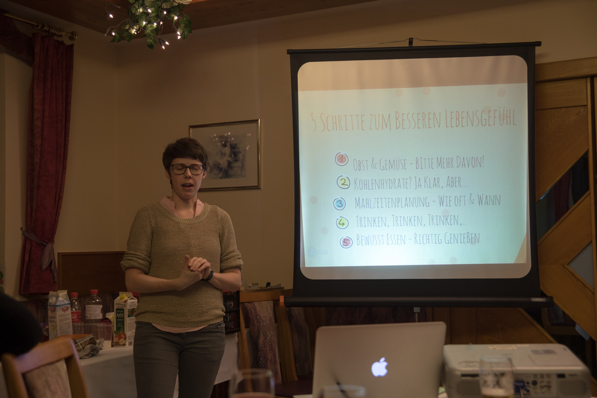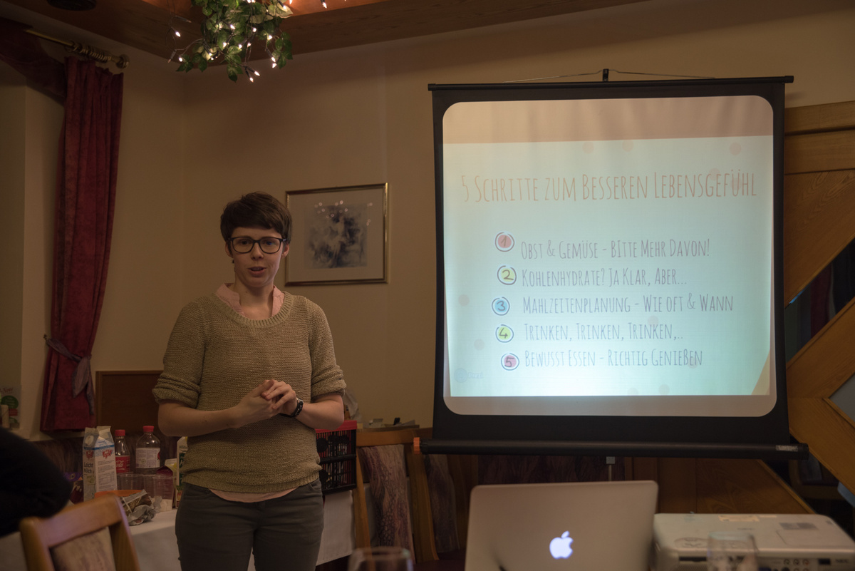 Eat better feel better war heuer ein voller Erfolg. Bei 4 Terminen lernten unsere Mitglieder alles rund um die Gesunde Ernährung. Für viele war es eine Überraschung, dass man 5 Mahlzeiten pro Tag zu sich nehmen soll. Optimal sind ein reichhaltiges Frühstück (z.B. Vollkornweckerl, Müsli) , eine kleine Zwischenmahlzeit am Vormittag (z.B. Obst), ein ausgewogenes Mittagessen ( mit Fleisch, Kohlenhydrate Gemüse etc.), eine kleine Zwischenmahlzeit am Nachmittag (z.B. Obst) und am Abend eine Jause. Unser Körper benötigt viel Flüssigkeit, vor allem Wasser. Nach einer Gruppenarbeit kochten die Mitglieder noch 4 Rezepte für eine gute Zwischenmahlzeit.