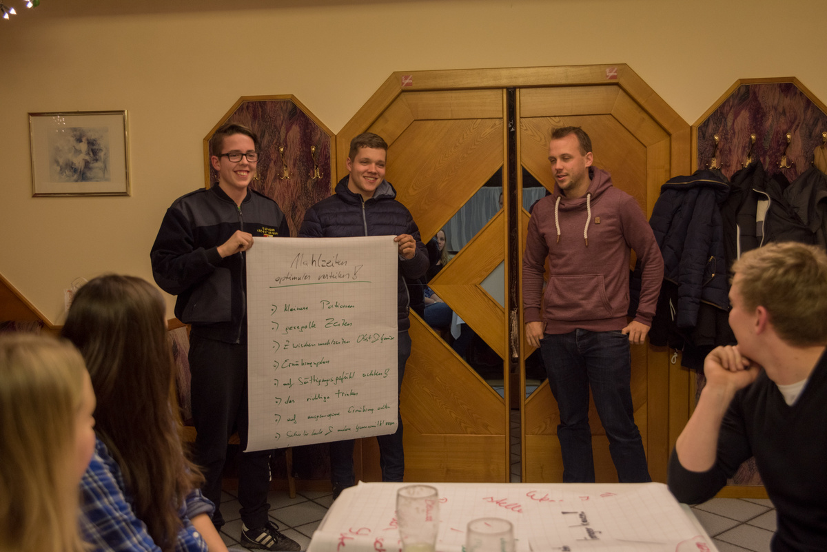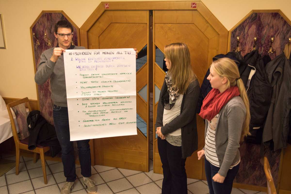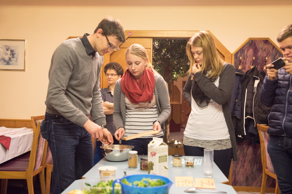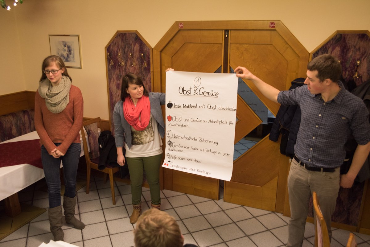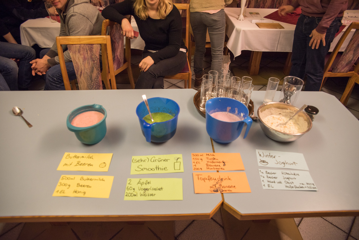 Eat better feel better war heuer ein voller Erfolg. Bei 4 Terminen lernten unsere Mitglieder alles rund um die Gesunde Ernährung. Für viele war es eine Überraschung, dass man 5 Mahlzeiten pro Tag zu sich nehmen soll. Optimal sind ein reichhaltiges Frühstück (z.B. Vollkornweckerl, Müsli) , eine kleine Zwischenmahlzeit am Vormittag (z.B. Obst), ein ausgewogenes Mittagessen ( mit Fleisch, Kohlenhydrate Gemüse etc.), eine kleine Zwischenmahlzeit am Nachmittag (z.B. Obst) und am Abend eine Jause. Unser Körper benötigt viel Flüssigkeit, vor allem Wasser. Nach einer Gruppenarbeit kochten die Mitglieder noch 4 Rezepte für eine gute Zwischenmahlzeit.