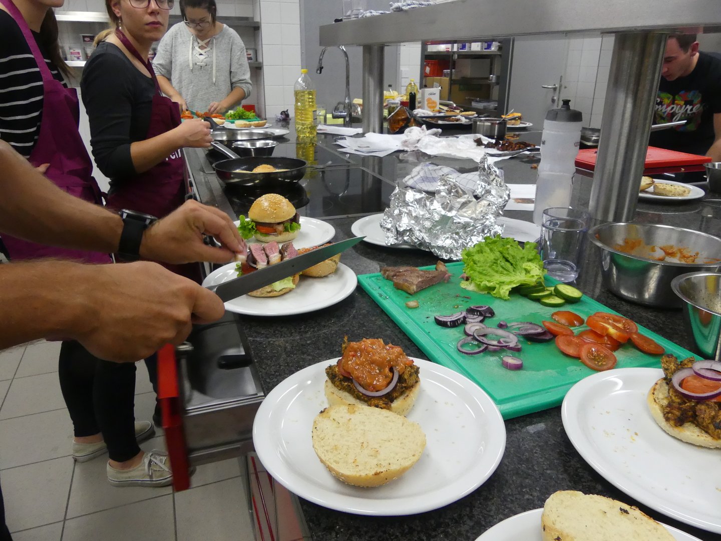 Am Freitag, den 4. Okober, fand der erste Termin unseres Kochkurses "Burger und Co." statt. 17 junge Köchinnen und Köche aus unserem Bezirk zauberten wunderbare Burger und diverse Beilagen. Natürlich wurden die leckeren Burger im Anschluss an den Kurs gemeinsam verkostet :)